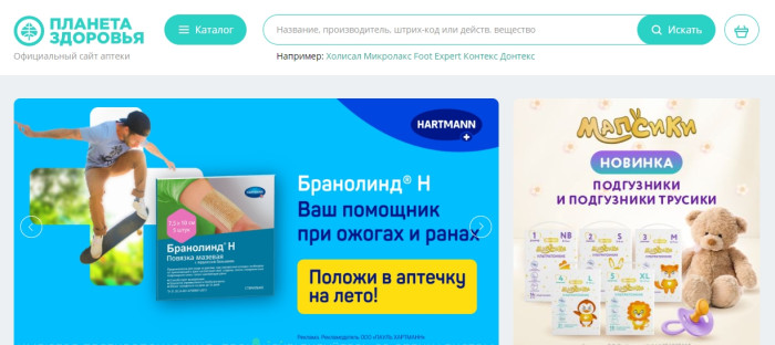 Планета Здоровья – это интернет-аптека, которая работает круглосуточно и оказывает квалифицированную онлайн-консультацию. Вы можете заказать медицинские препараты по приятной цене, а также сэкономить, используя акционные предложения. В каталог товаров входят: лекарственные препараты и БАДы, косметические средства, товары для мам и детей, медицинские изделия и прочее.