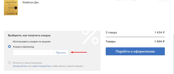 Как использовать промокод в Буквоед