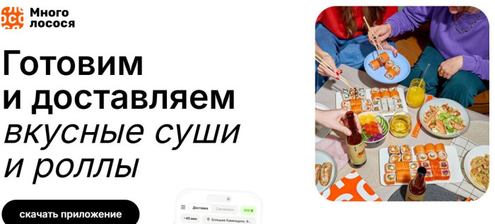 Приложение по доставке еды Много лосося непременно поднимет вам настроение, ведь здесь представлены самые вкусные блюда азиатской кухни: суши, роллы, супы, салаты и многое другое.