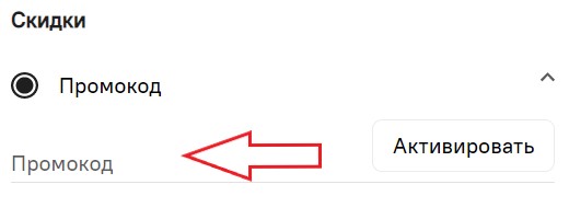 - Найдите в корзине поле для ввода промокода.