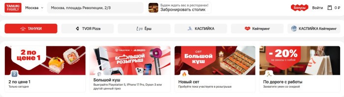 - Ежедневные акции. Каждый день в Тануки вас ждут выгодные предложения и интересные акции, чтобы заказывать еду было ещё приятнее.